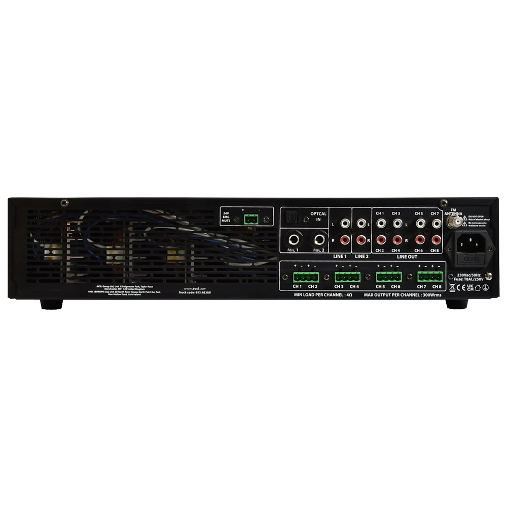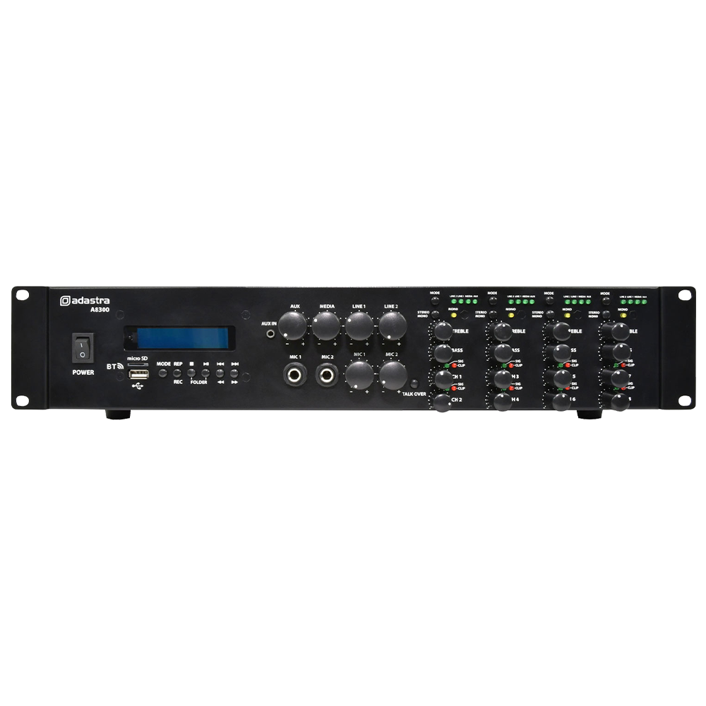 Adastra A8300 8 x 150W in 8Ω stereo mixer amplifier with Bluetooth