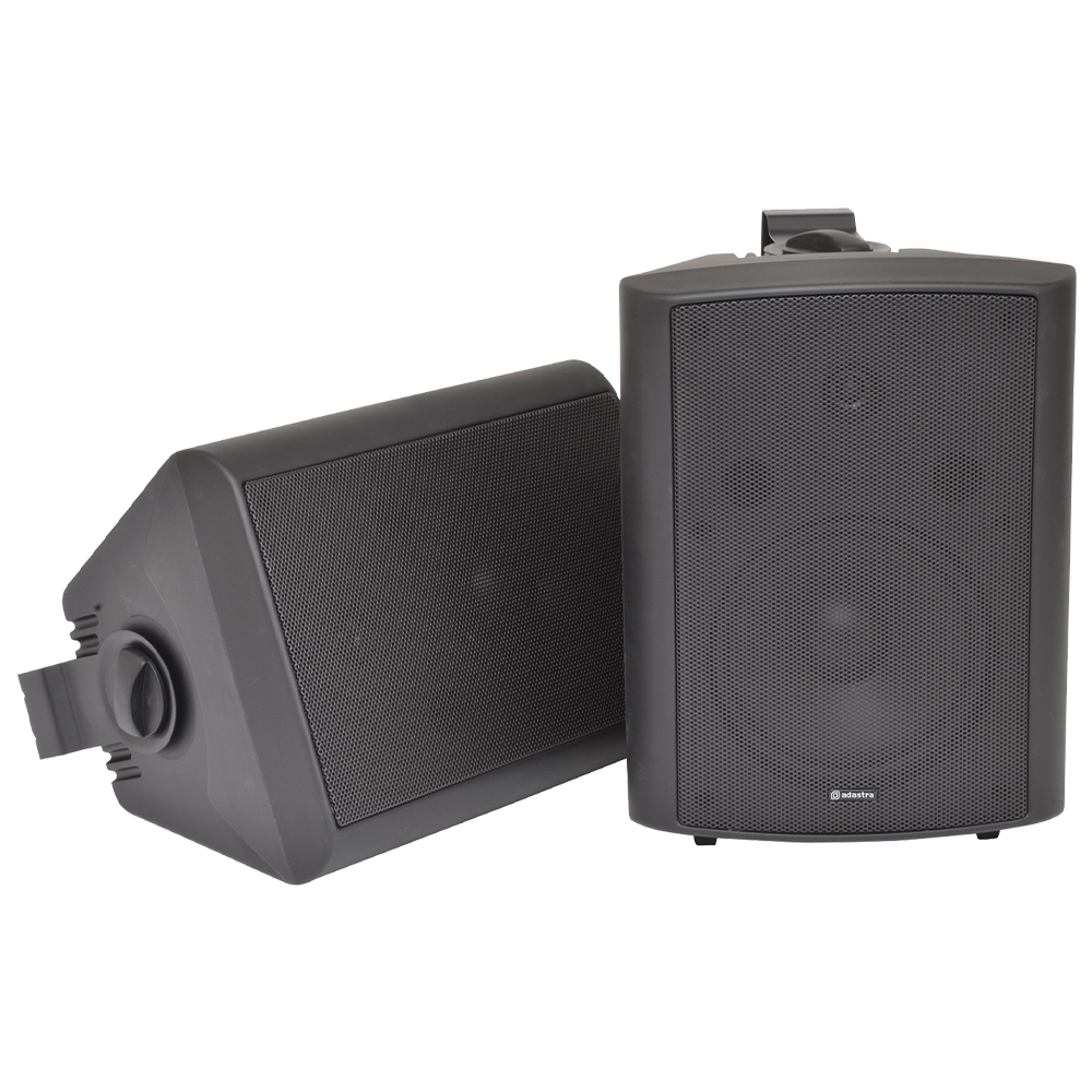 Industry standard indoor speakers with ABS enclosures and a powder coated steel grille. Wall or ceiling surface mounting via the adjustable steel bracket. Each with standard 8 Ohms impedance and supplied in pairs for connection from a stereo amplifier. Main drivers have high quality coated paper cones for full-sounding low and mid-range frequencies, ideal for music playback and clear voice announcements.