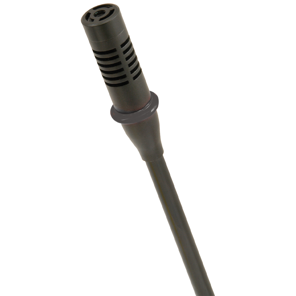 A flexible stem microphone with base for conferences or meetings. Connection to the base is via XLR and provides power to the condenser microphone capsule either from 2 x AAA batteries in the base or from external phantom power.