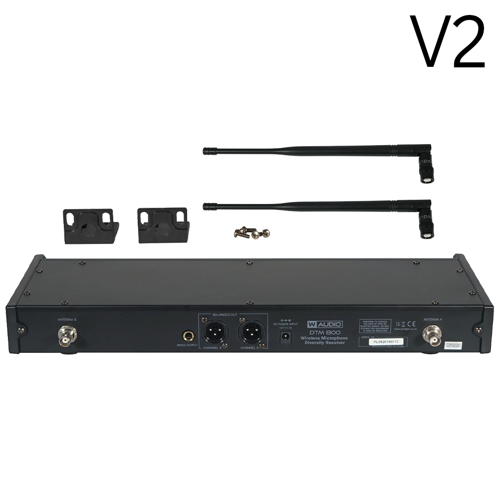 W Audio DTM 800H V2 twin diversity wireless microphone system on Ch 70 (863-865 MHz) with 2 x handheld transmitters – with V2 software