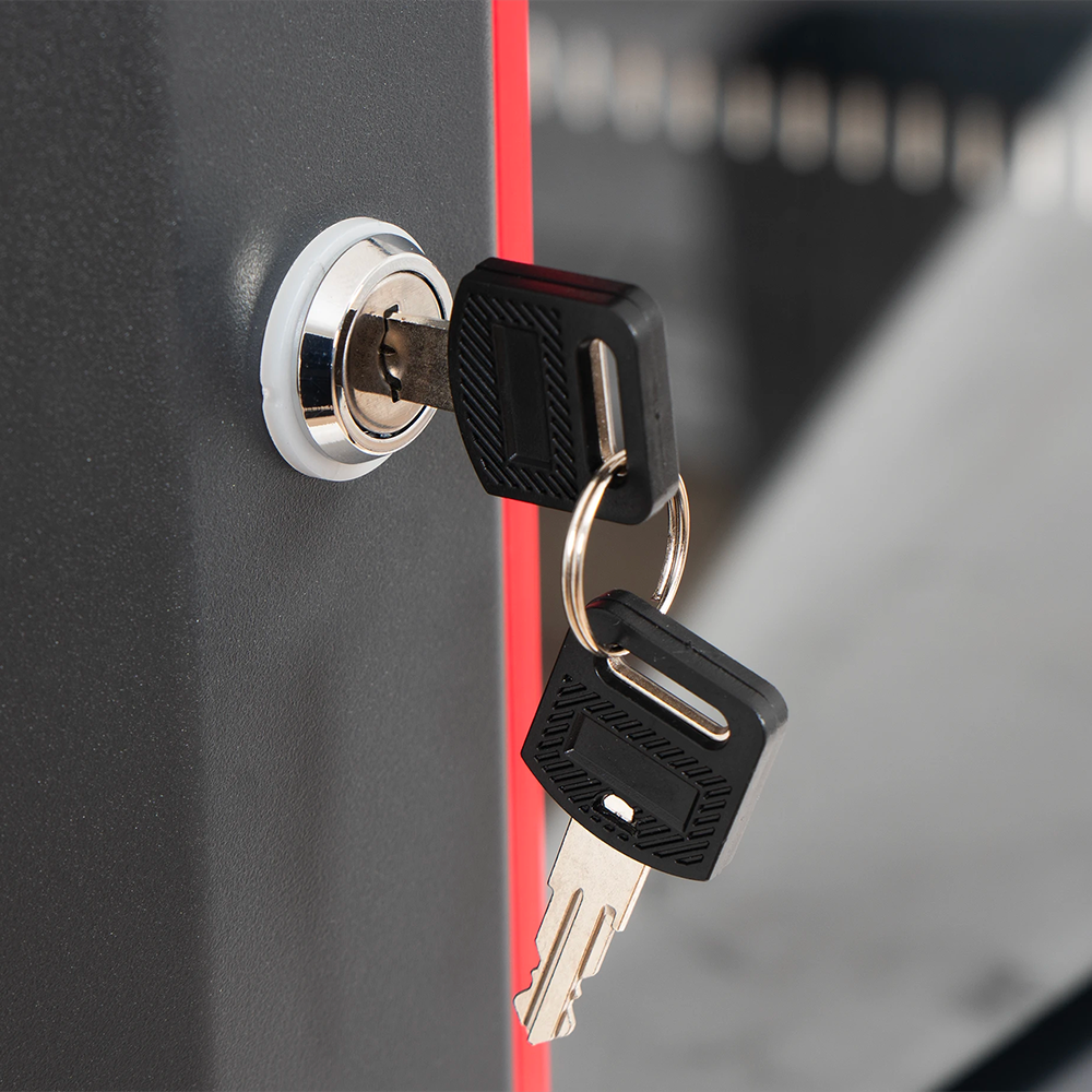 - Front and rear opening with lock and key
